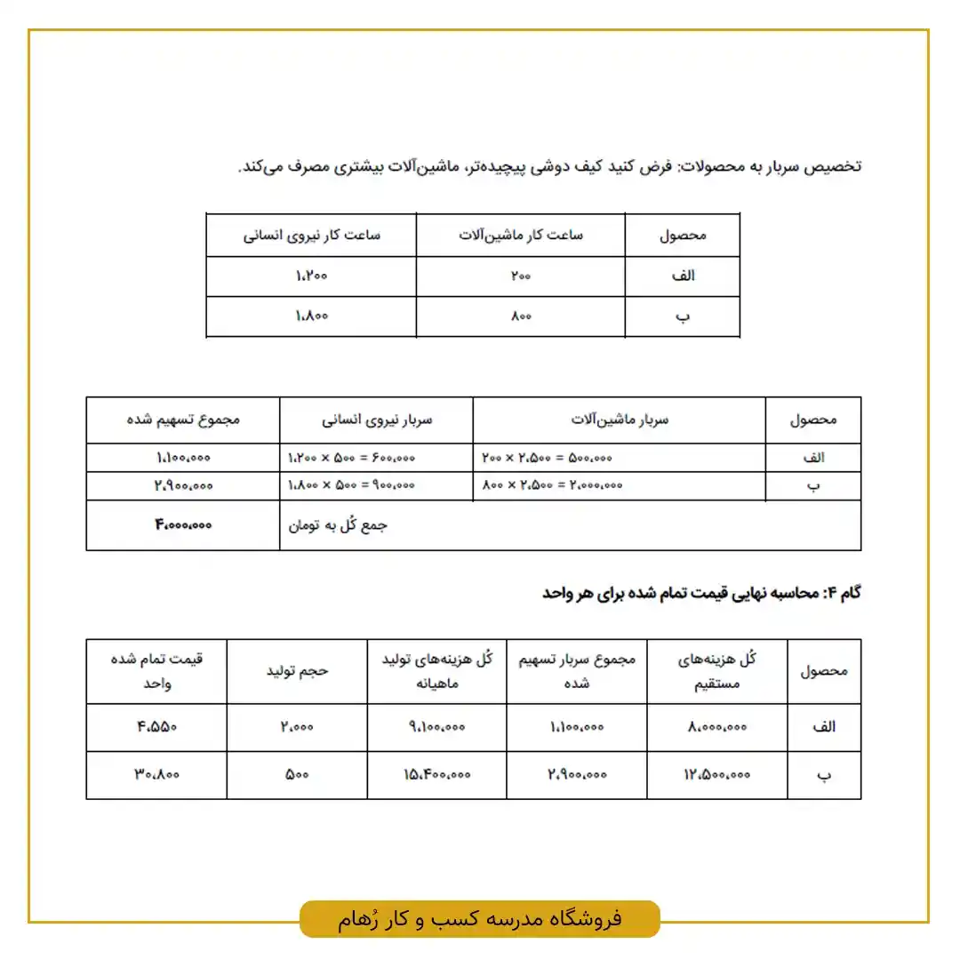 آیا می‌دانید تفاوت محاسبه قیمت تمام شده محصول در یک شرکت تک‌محصولی و یک سبد محصولی با متدولوژی ABC چیست؟ این PDF، نه یک تئوری خشک، بلکه نقشه راه اختصاصی شما برای اقدام عملی است. با مثال‌های عددی دقیق و واقعی (شامل مثال شرکت چرم آرتا) به شما نشان می‌دهیم که چگونه تخصیص سیستماتیک سربار، خطاهای مدیریت کسب و کار را ریشه‌کن کرده و شما را مستقیماً به سمت بهینه‌سازی سیستم و رشد پایدار هدایت می‌کند. مهارت‌های نرم مدیریتی خود را با این داده‌های سخت ارتقا دهید. این تنها یک فایل نیست، بلکه تضمین شفافیت مالی و استراتژیست رشد سیستمی درون کسب‌وکار شماست!💰👇