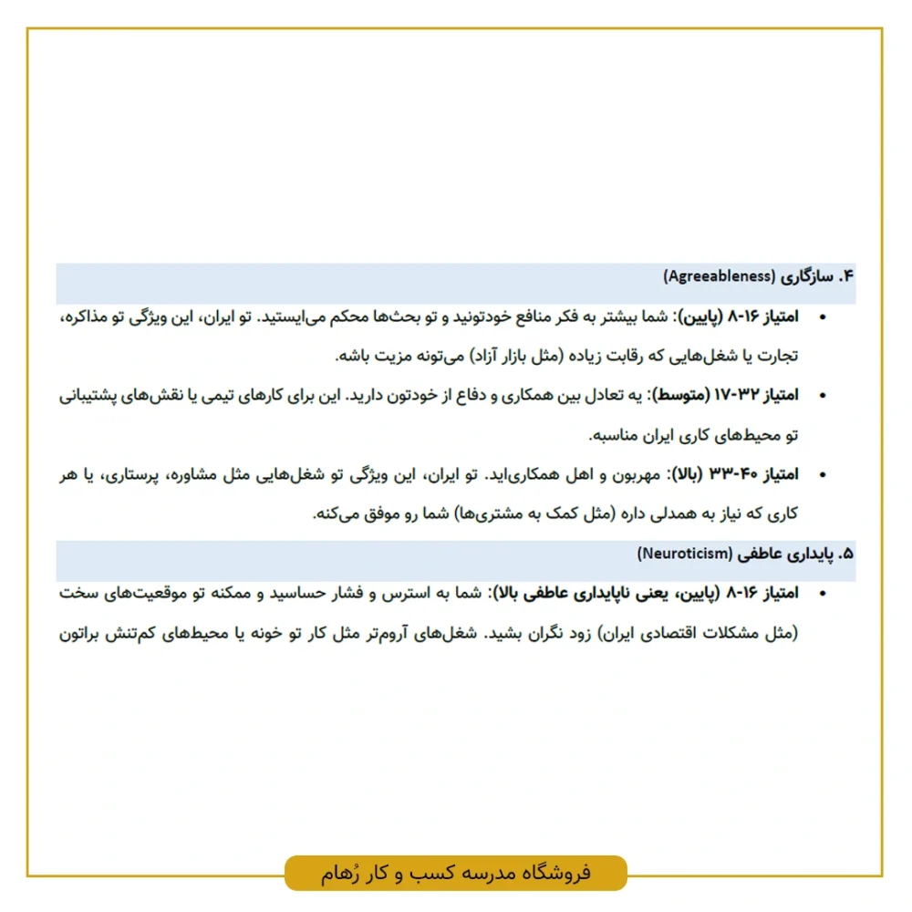 راهنمای فارسی + مثال + تفسیر نتایج برای بهرهبرداری شغلی و شخصی